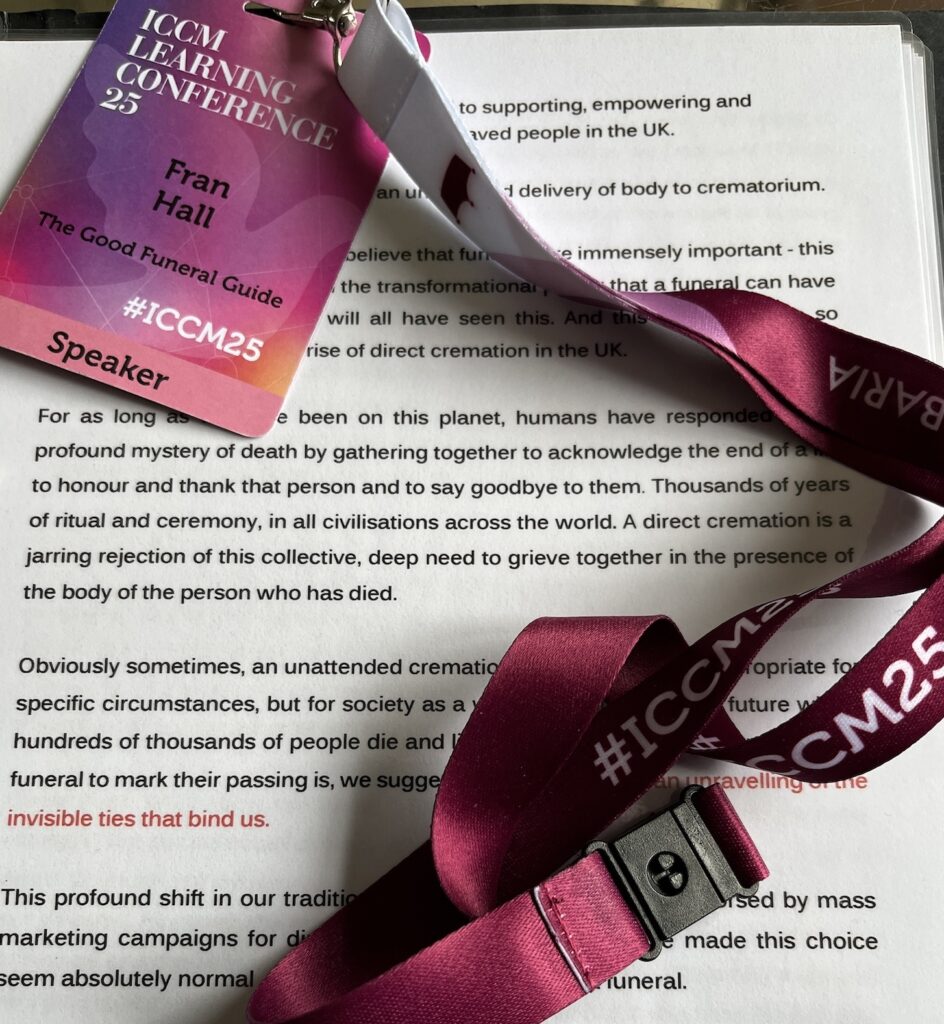Yesterday, we had the great honour of being invited to take part in the closing debate at the ICCM Learning Conference in Warwickshire. The title of the discussion was ‘Affordable Choice, But at What Cost?’ and the subject was the rise of direct cremation.