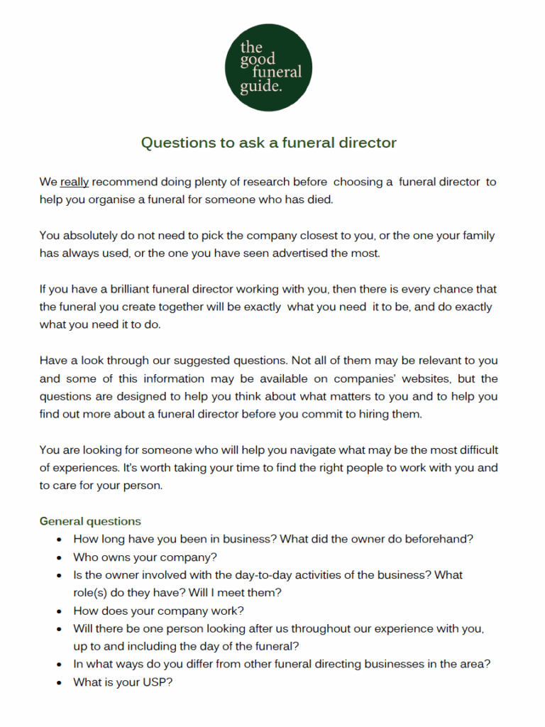 Questions to ask a Funeral Director